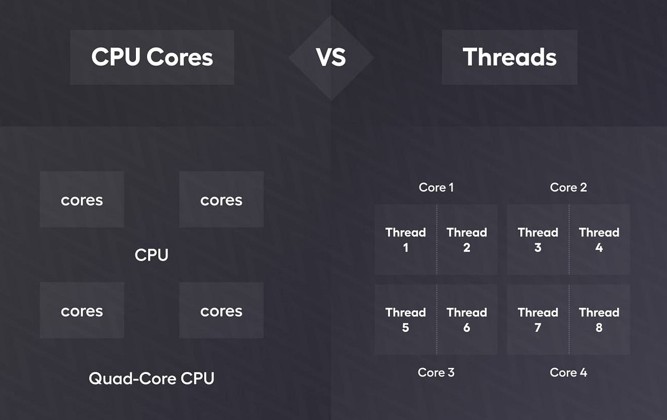 AMD Ryzen menawarkan lebih banyak core dan thread dibandingkan Intel pada kisaran harga yang sama. Sebagai contoh, Ryzen 5 hadir dengan 6 core, sedangkan Ryzen 7 bahkan dapat mencapai hingga 8 core atau lebih. Hal ini membuat Ryzen unggul untuk kebutuhan multitasking. Meski demikian, Intel Core juga menyediakan varian dengan jumlah core yang cukup kompetitif, meskipun biasanya lebih sedikit pada level harga yang setara.