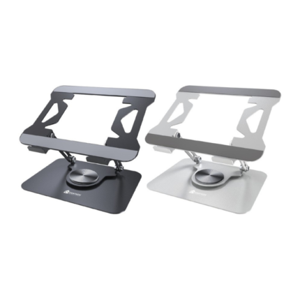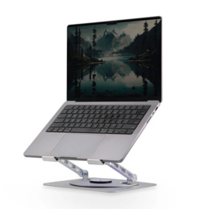 Basis yang dapat berputar 360 derajat, memungkinkan fleksibilitas penuh untuk menyesuaikan posisi laptop sesuai kebutuhan pengguna.