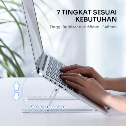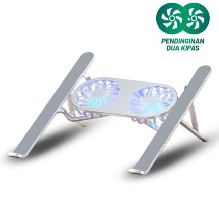 Stand laptop ergonomis yang dilengkapi dengan kipas pendingin kuat, membantu menjaga suhu laptop tetap optimal dan memberikan kenyamanan saat penggunaan jangka panjang.
