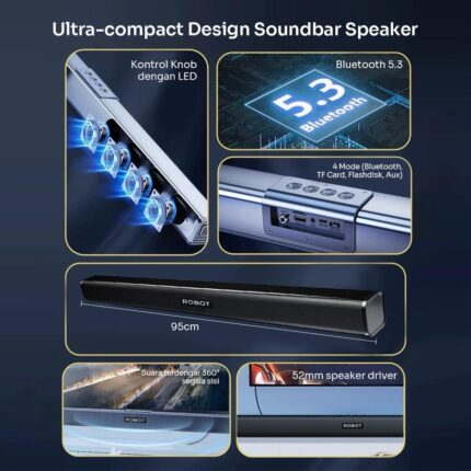 – Tiga mode pemutaran, koneksi bluetooth 5.4, TF card, AUX Audio cable