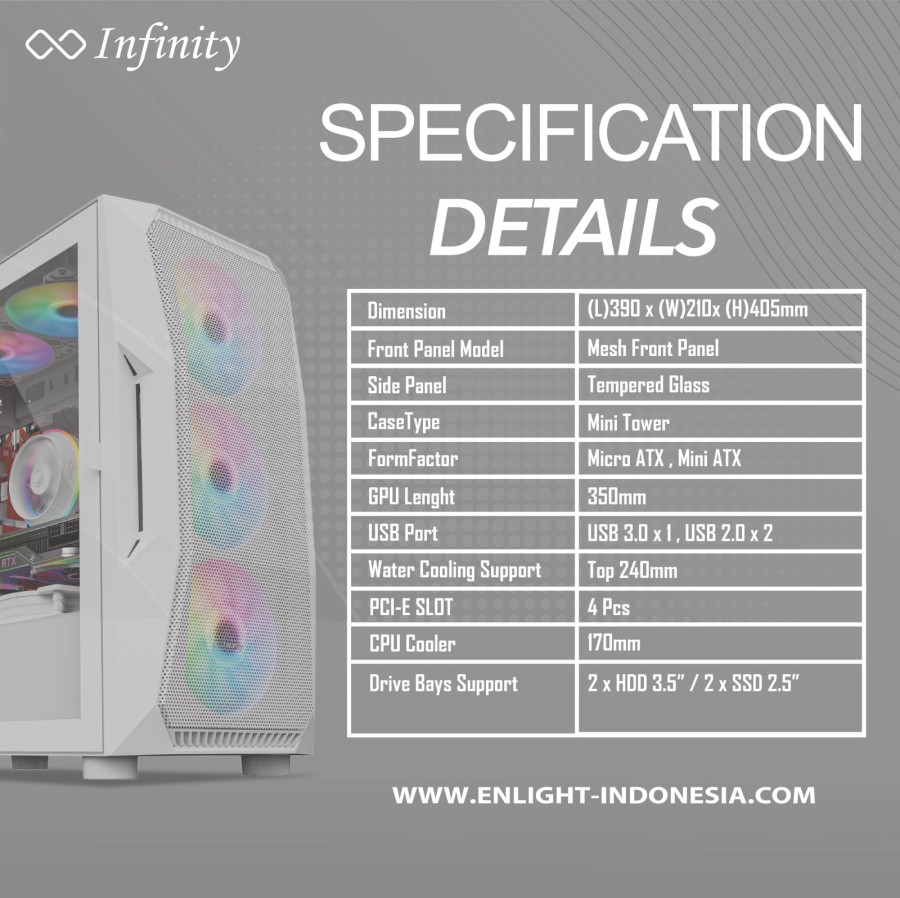 Dimenssions: (390 * 210 * 405 mm) ( M-ATX)