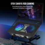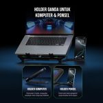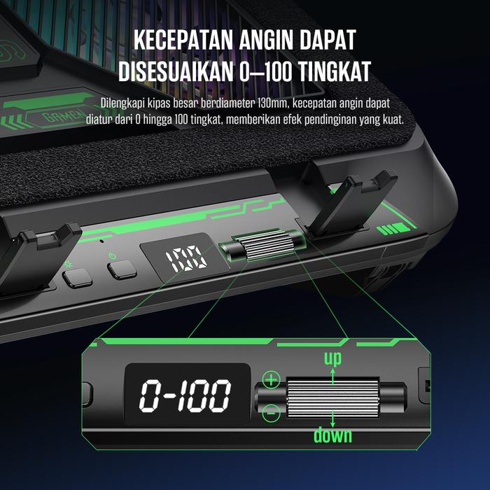 Fitur Tambahan : Dudukan ganda untuk laptop & ponsel, layar digital untuk kecepatan kipas, desain anti-selip