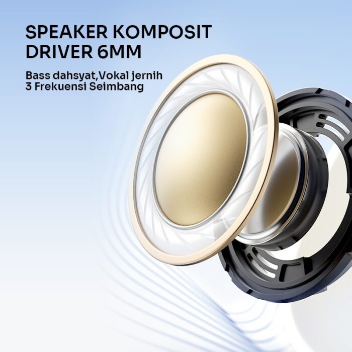 7. Driver 6mm Titanium Alloy speaker dengan super bass jernih serta berkualitas