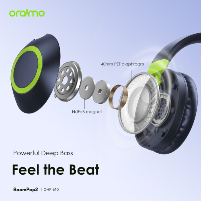Oraimo Boompop 2S Wireless Bluetooth Headphone OHP-610S sangat layak buat para pecinta musik yang mendambakan Flexibilitas dalam bergerak serta kemampuan battery yang tahan lama. Hadir dengan harga yang terjangkau tetapi sudah dilengkapi Strong Bass dan HD Audio serta wireless feature yang menghasilkan suara sekelas studio musik menbuat Headphones ini layak jadi pilihan kamu buat aktivitas sehari-hari tanpa ribet dengan gesture control yang memudahkan pengguna beraktivitas sambil mendengarkan headphone.
