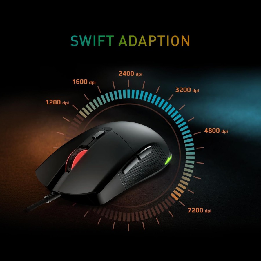 • Precise Optical Mouse Sensor – Up to 7,200 DPI to deliver accurate tracking with adjust 6 DPI presets.