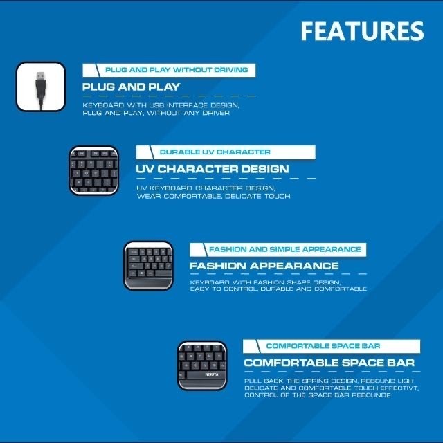Full-size keyboard dan mouse dengan desain familier yang mudah digunakan yang bisa langsung digunakan begitu dikeluarkan dari kemasannya. Colokkan saja combo berkabel ini via USB dan langsung gunakan.