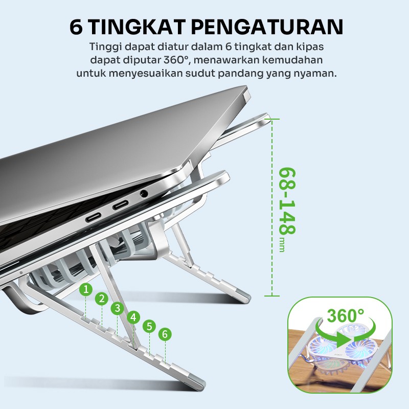 1x ROBOT RT-LS04 Aluminium Alloy Liftable & Foldable Laptop Cooling Stand Silver