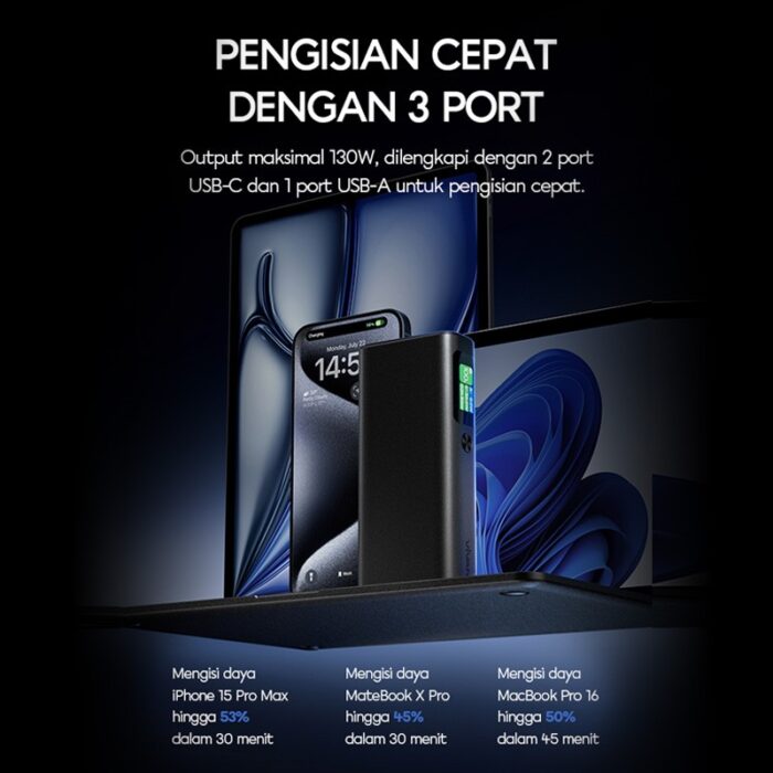 5. 130W bidirectional fast charging for quick charging of phones, laptop and computers.