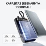Kapasitas besar 10000mAh, cukup untuk mengisi iPhone 15 hingga 2 kali
