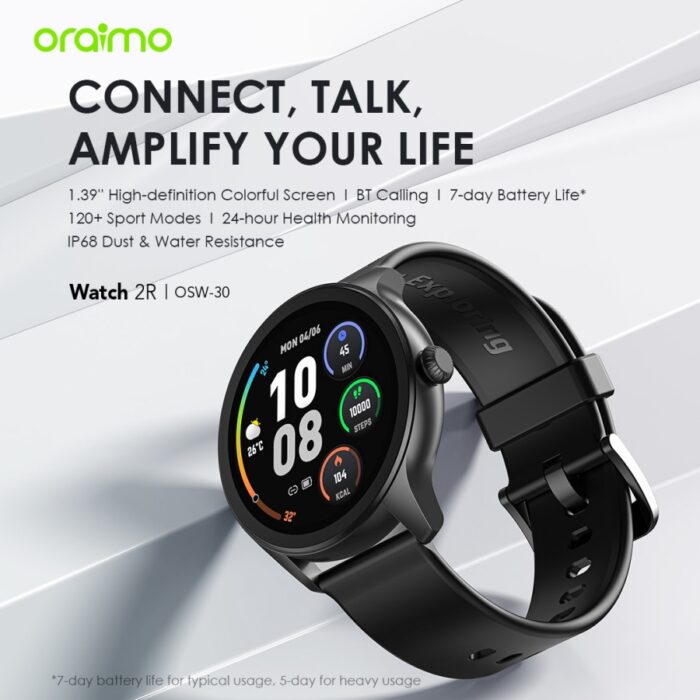 Oraimo Smart 2R Watch OSW-30 adalah jam tangan pintar dengan banyak fitur pendukung yang dapat memudahkan Anda dalam menjalani aktivitas harian Anda, desainnya yang premium sangat stylish dan sangat cocok digunakan saat sedang berolahraga maupun saat berpergian.