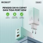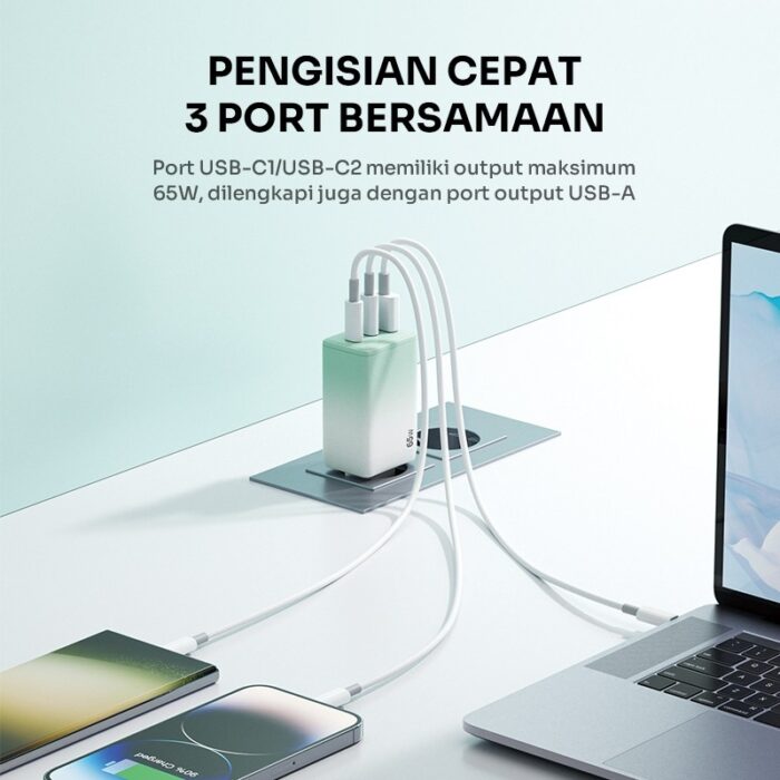 3. Pengisian cepat 3 Port bersamaan, Port USB-C1/USB-C2 dengan output maksimum 65W dan port output USB-A