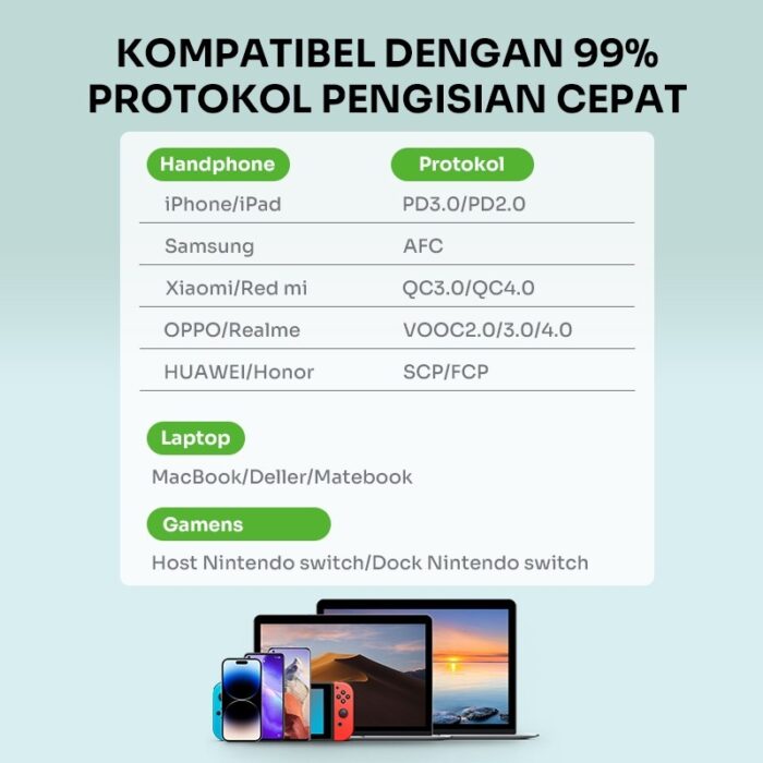 5. Kompatibel dengan 99% protokol pengisian cepat