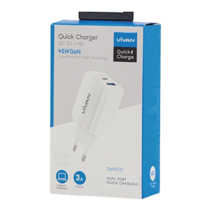 2. USB 45W Output, USB-A 18W Output, Charge 2 Perangkat bersamaan.