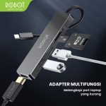 1x ROBOT HT240S USB C HUB 5-in-1 Type C Adapter, With 4K HDMI, USB3.0, USB2.0, SD/TF Card Reader Black